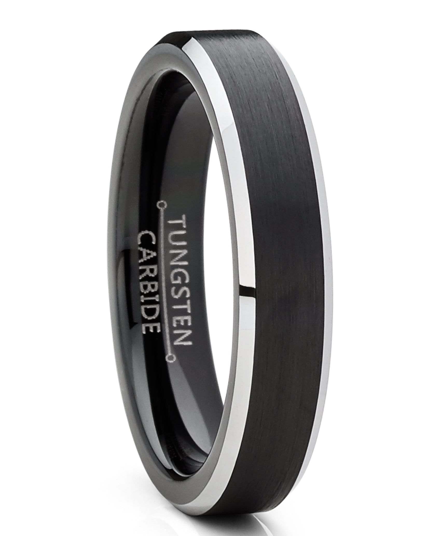 Men Women Wedding Black Tungsten Ring 4mm Matte Finish Beveled Polished Edge Comfort Fit 12 Walmart Com